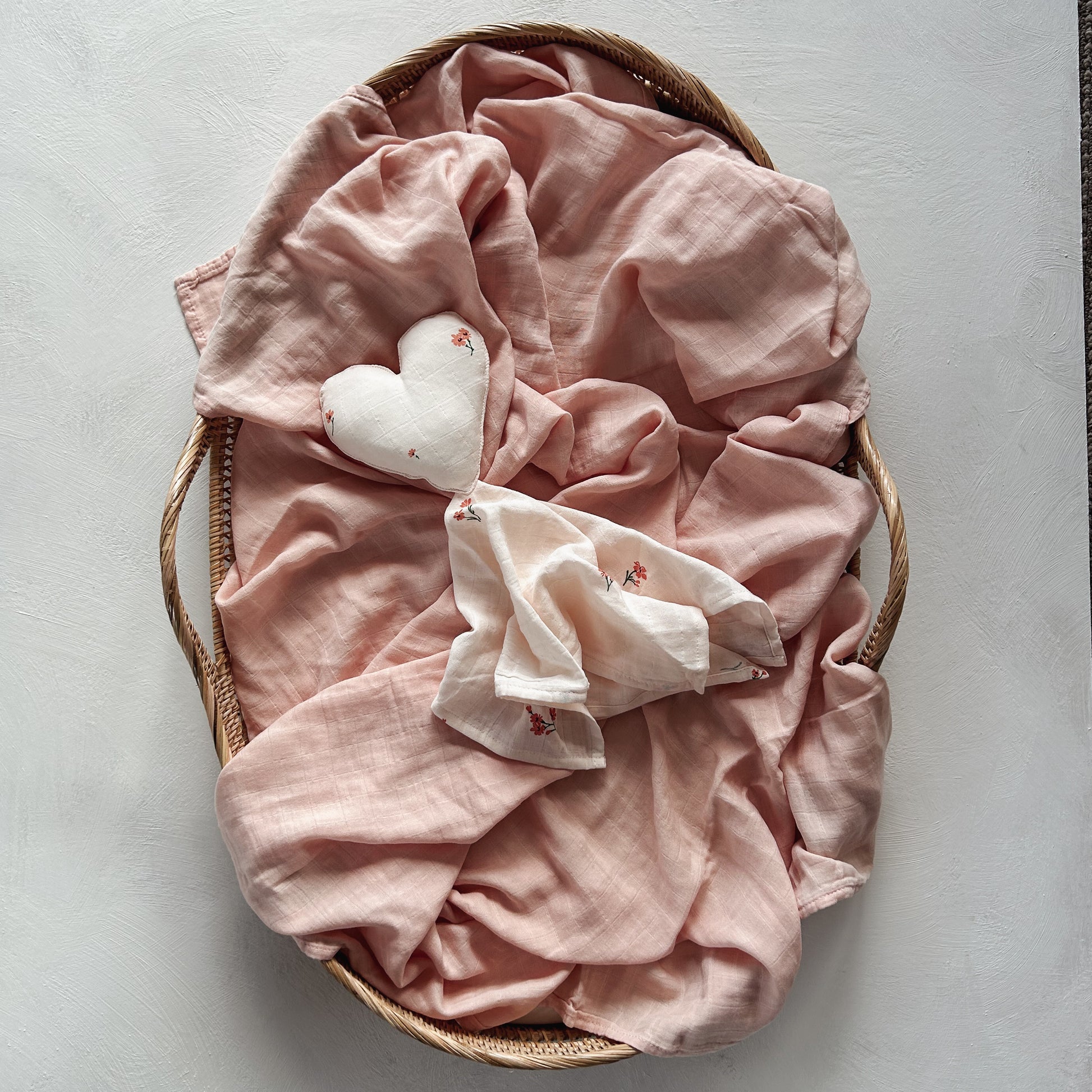 Our 100% organic cotton Cherry Blossom heart comforter is super soft, with a simple floral print and a must have for your baby.